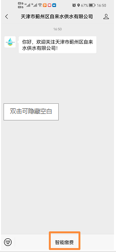 掃描二維碼關注微信公眾號或微信搜索“天津市薊州區(qū)自來水供水有限公司”公眾號并關注,如圖