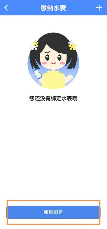 點擊首頁上的繳納水費,進入繳納水費界面。首次進入需綁定表具,如圖