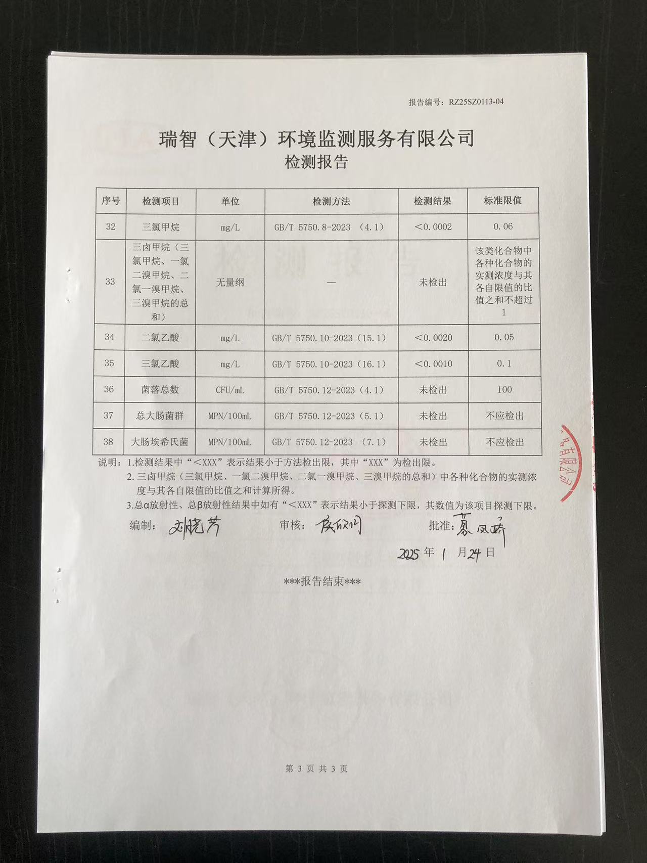 2025年1月份水質(zhì)檢測報告