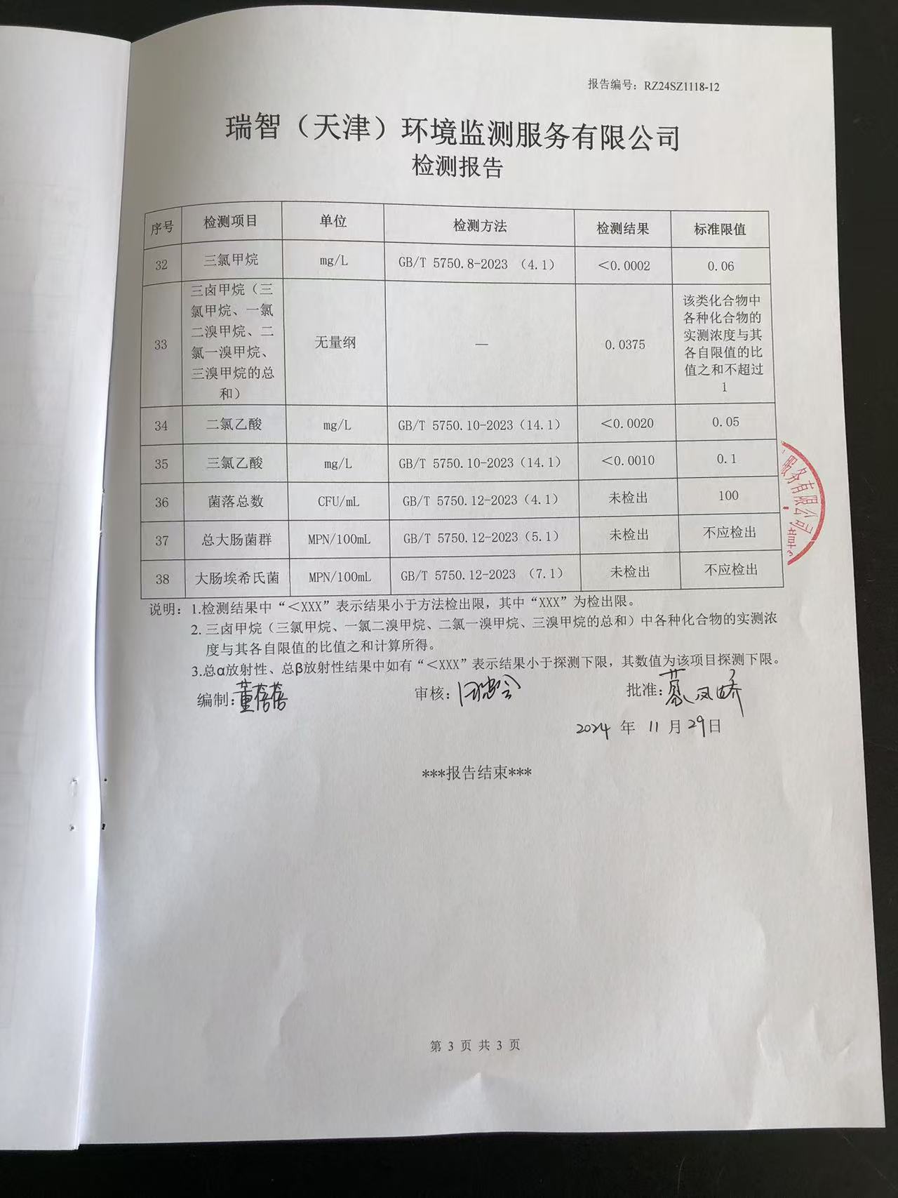 2024年11月份水質(zhì)檢測(cè)報(bào)告