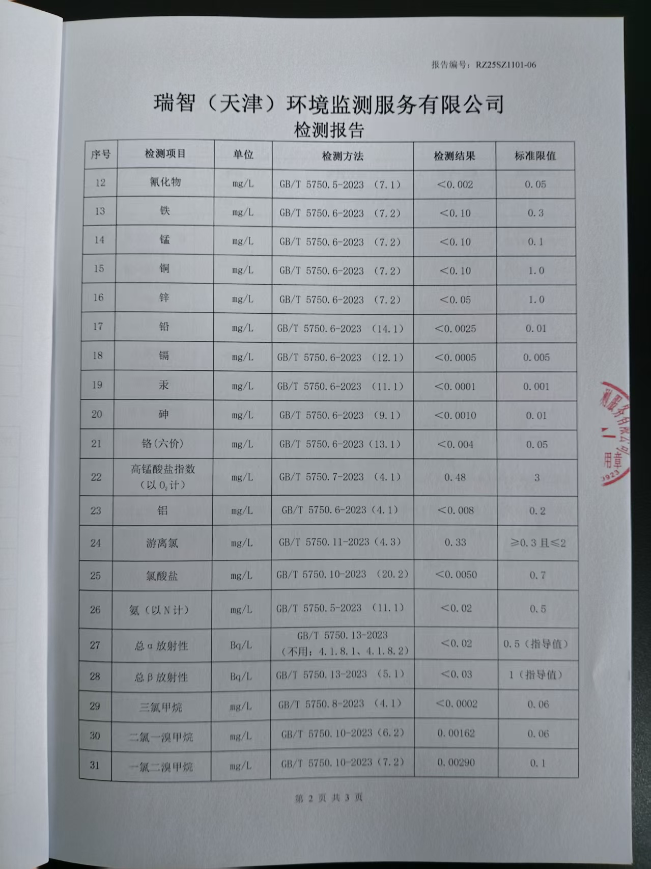 2025年11月份水質(zhì)檢測報告