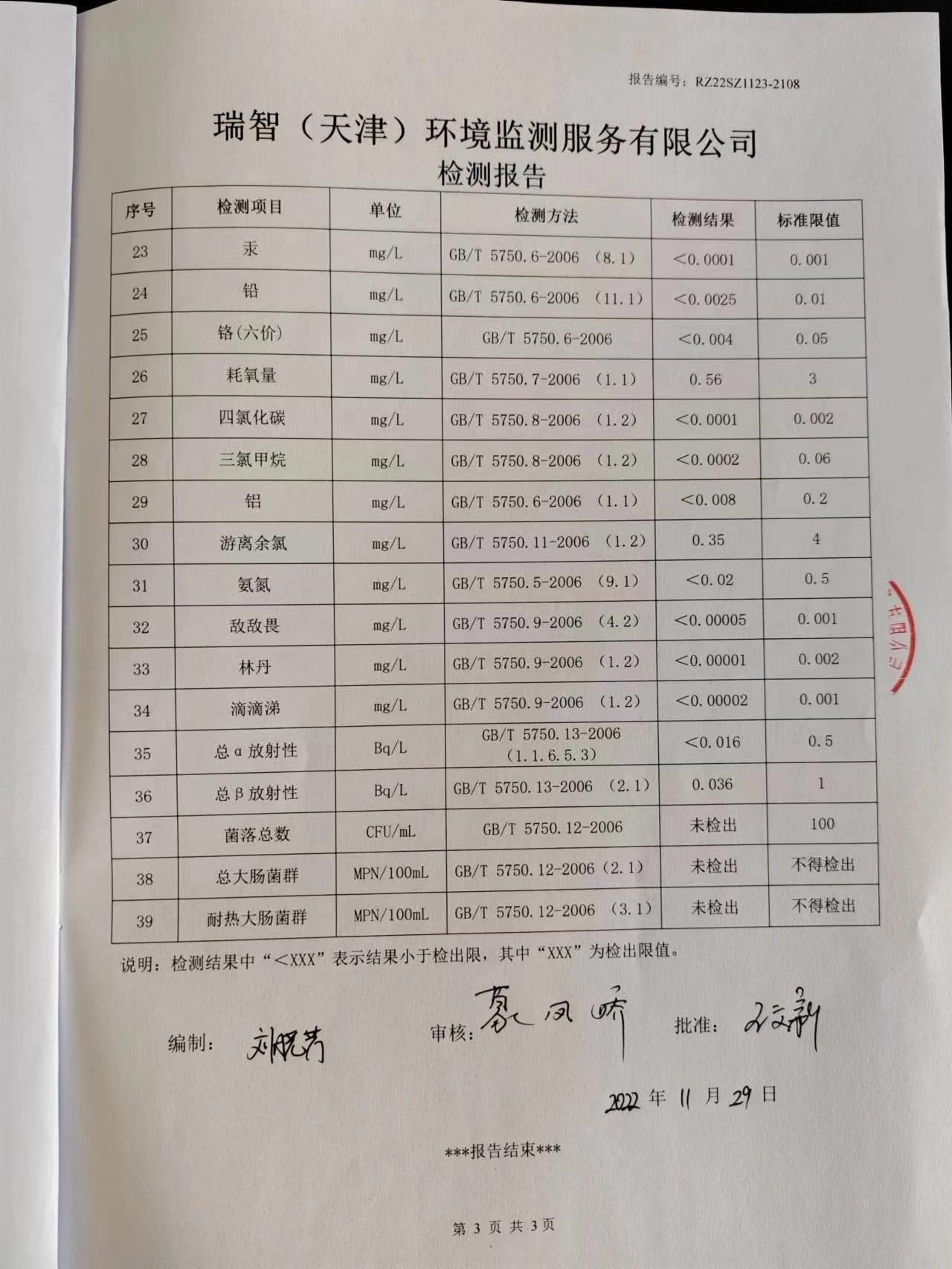 十一月份檢測(cè)報(bào)告