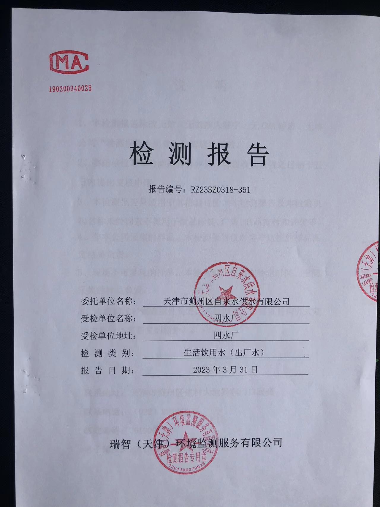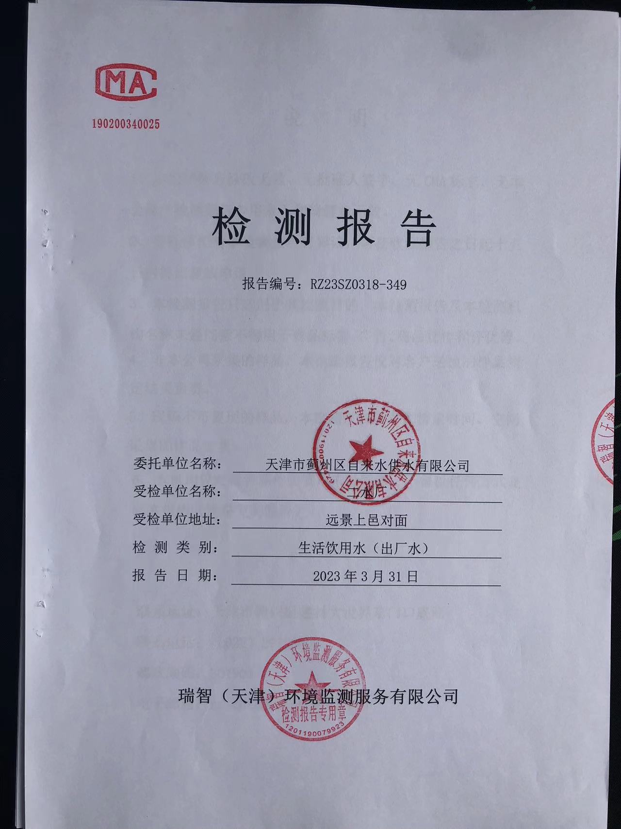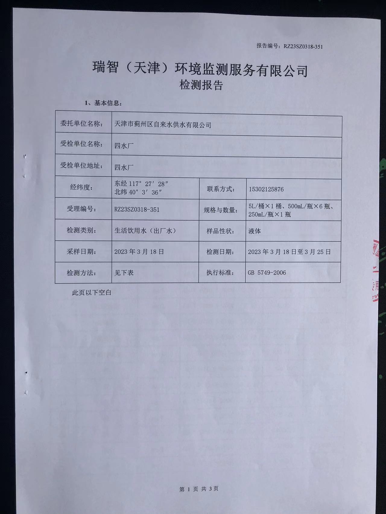 2023年3月份水質(zhì)檢測報告
