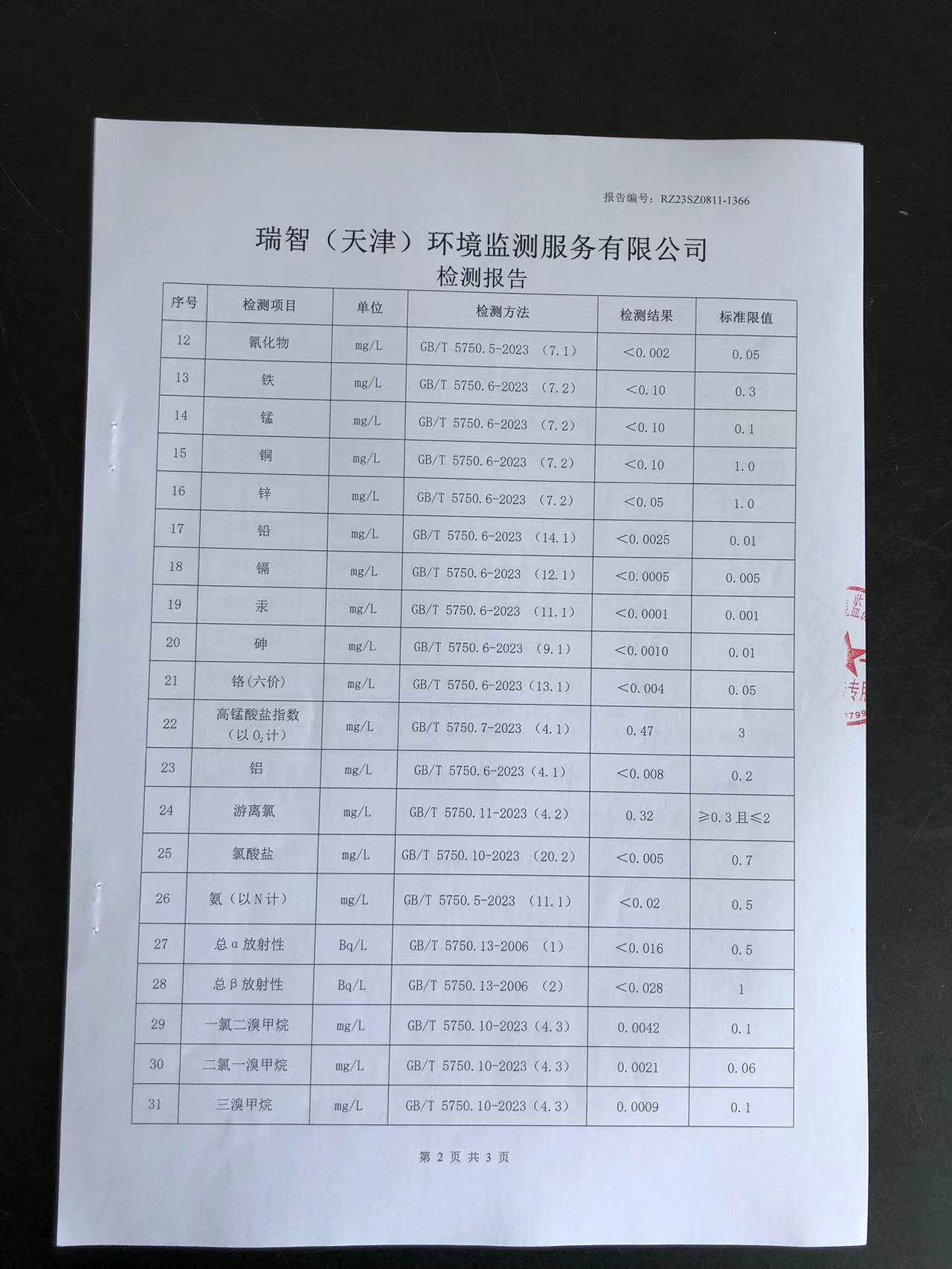 2023年8月份水質(zhì)檢測報告