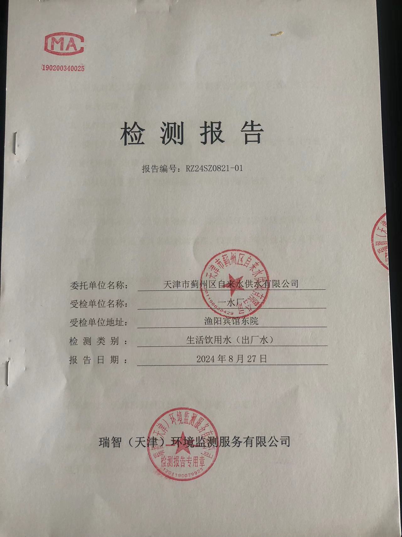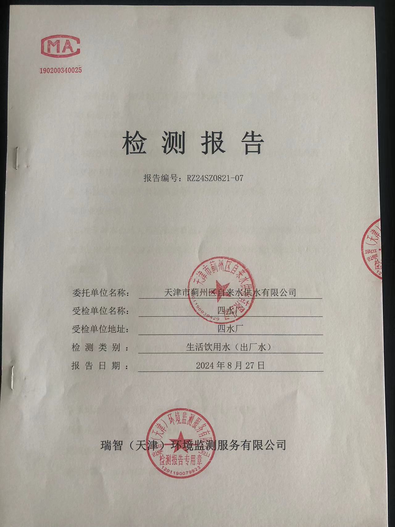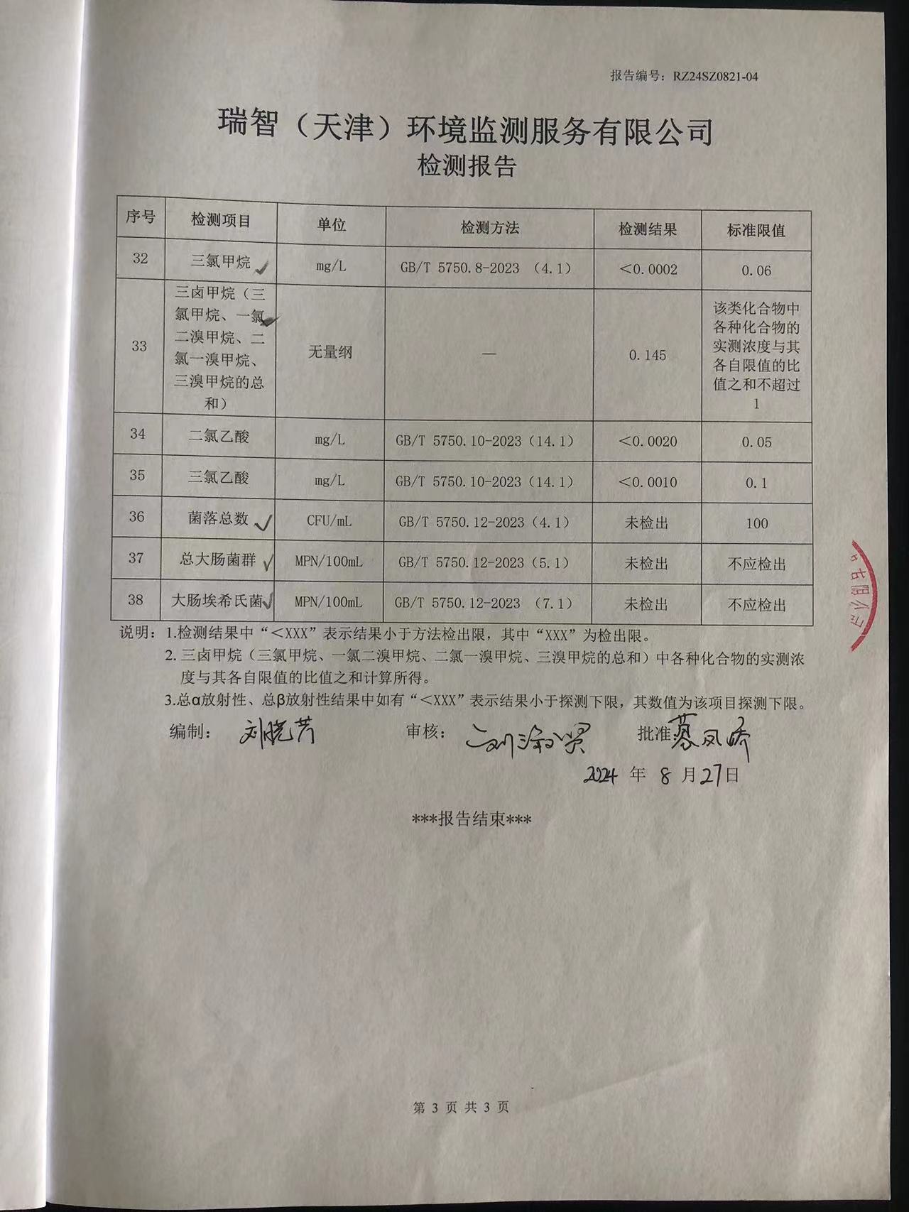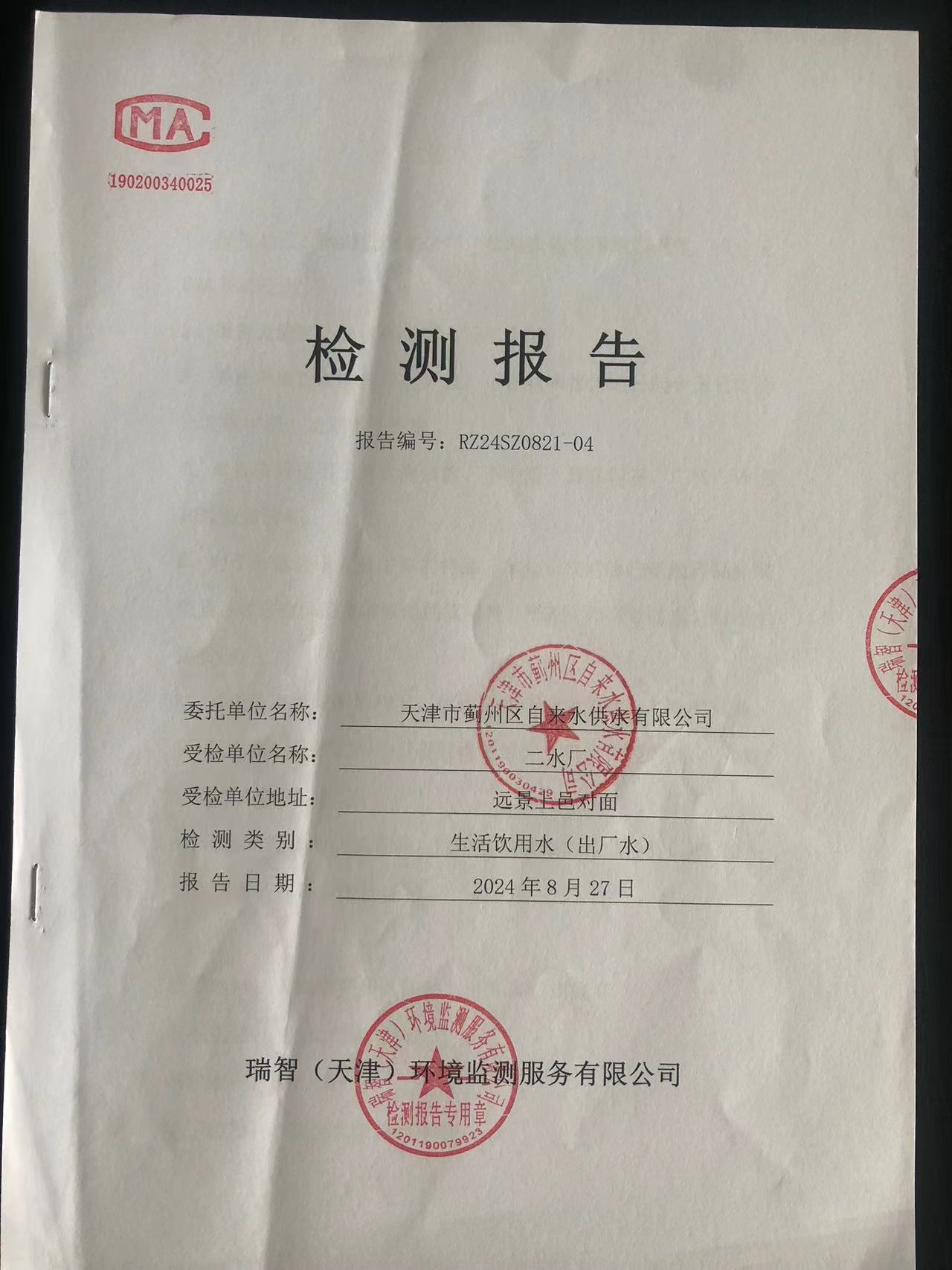 2024年8月份水質(zhì)檢測報(bào)告