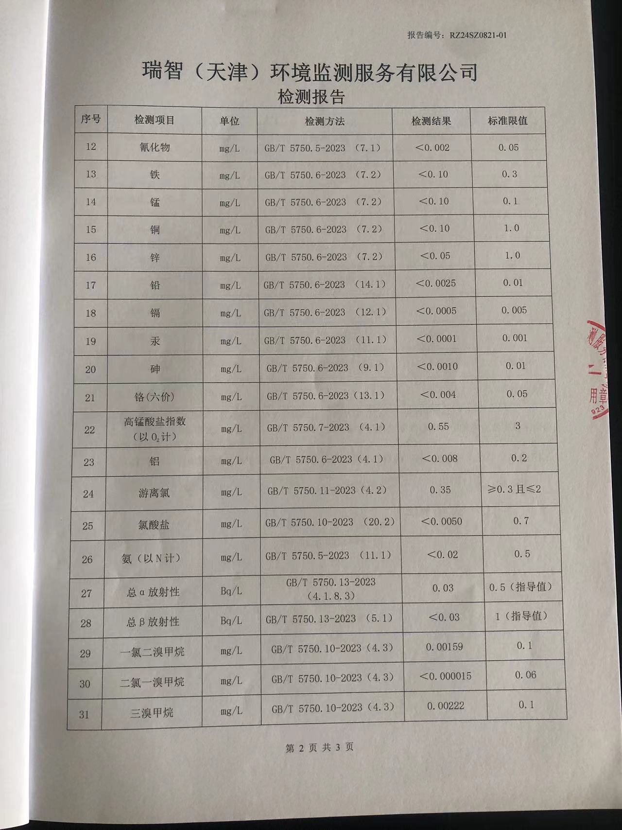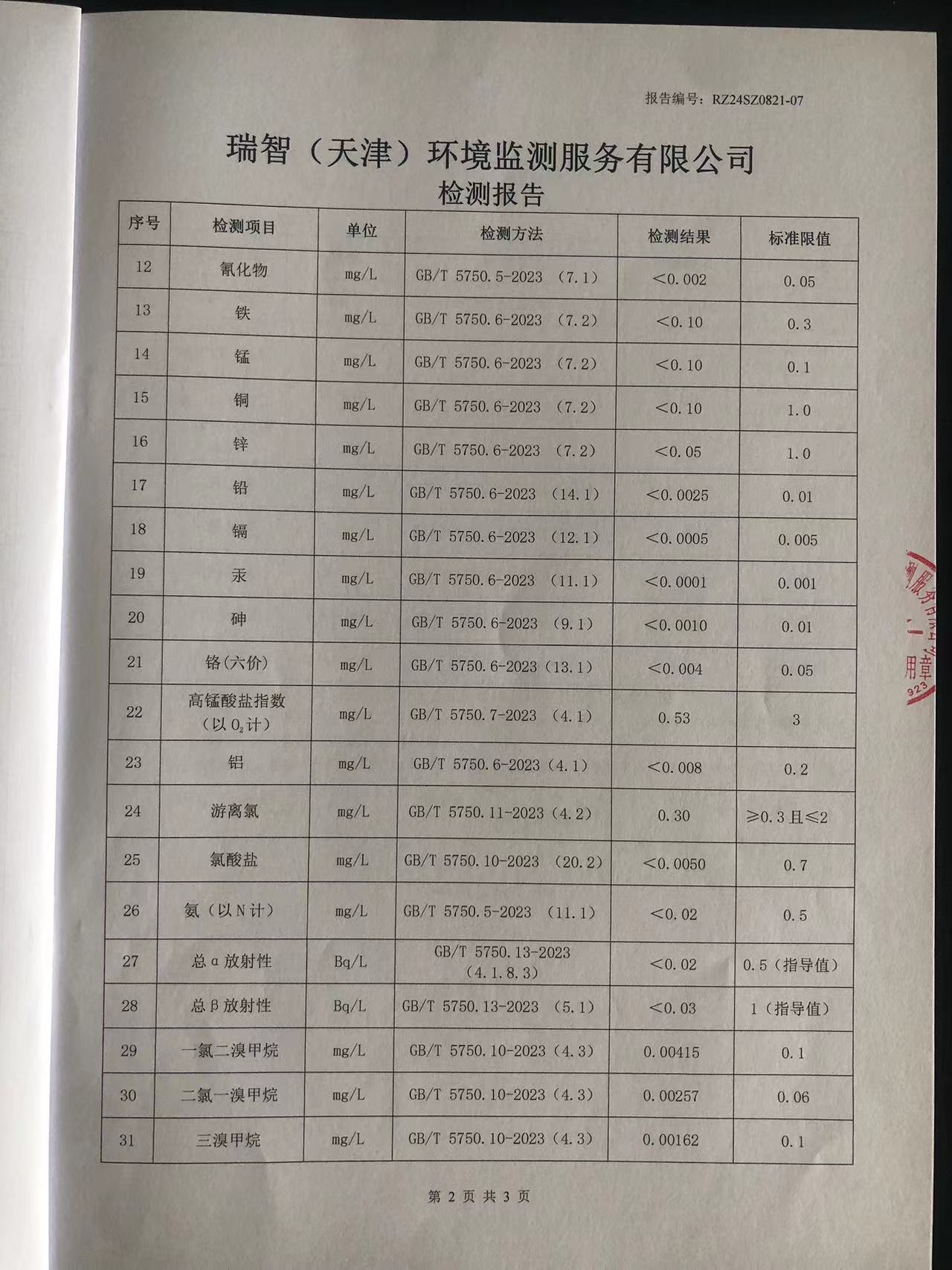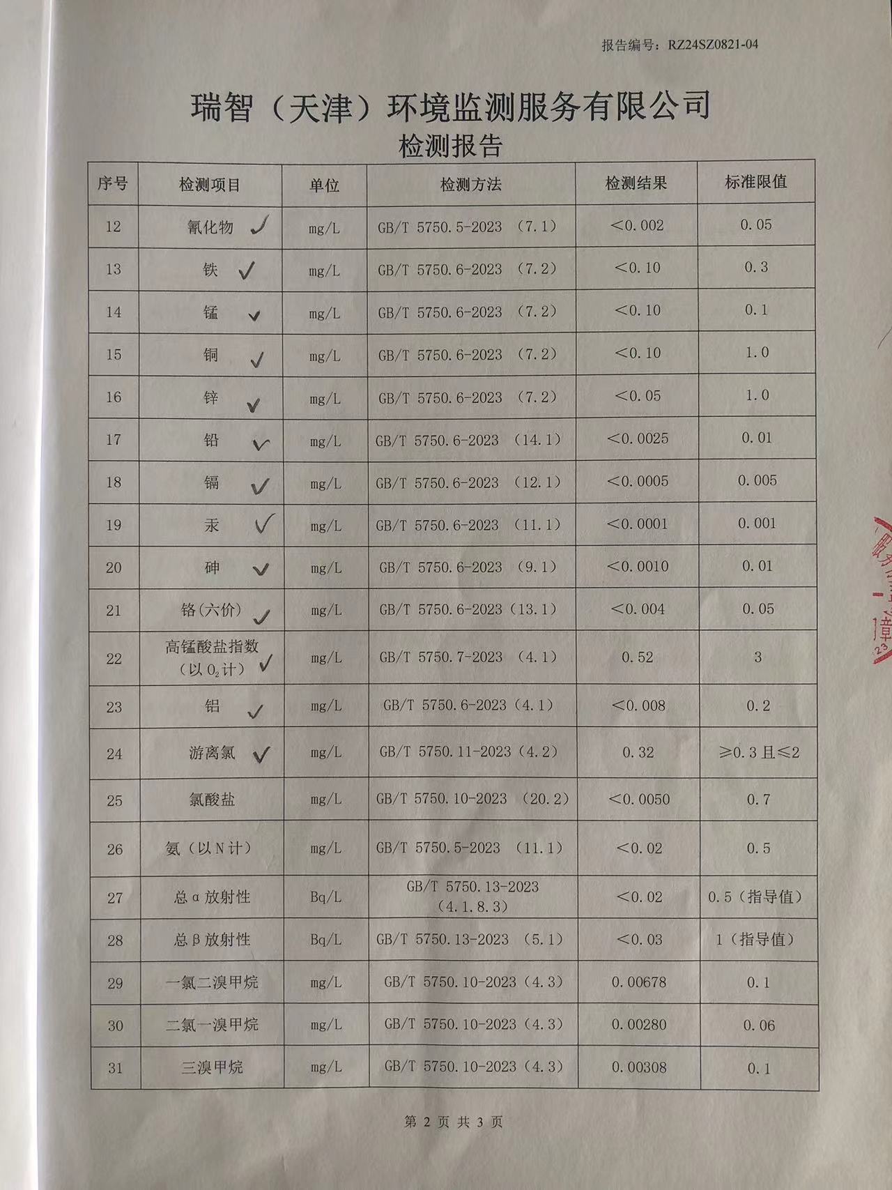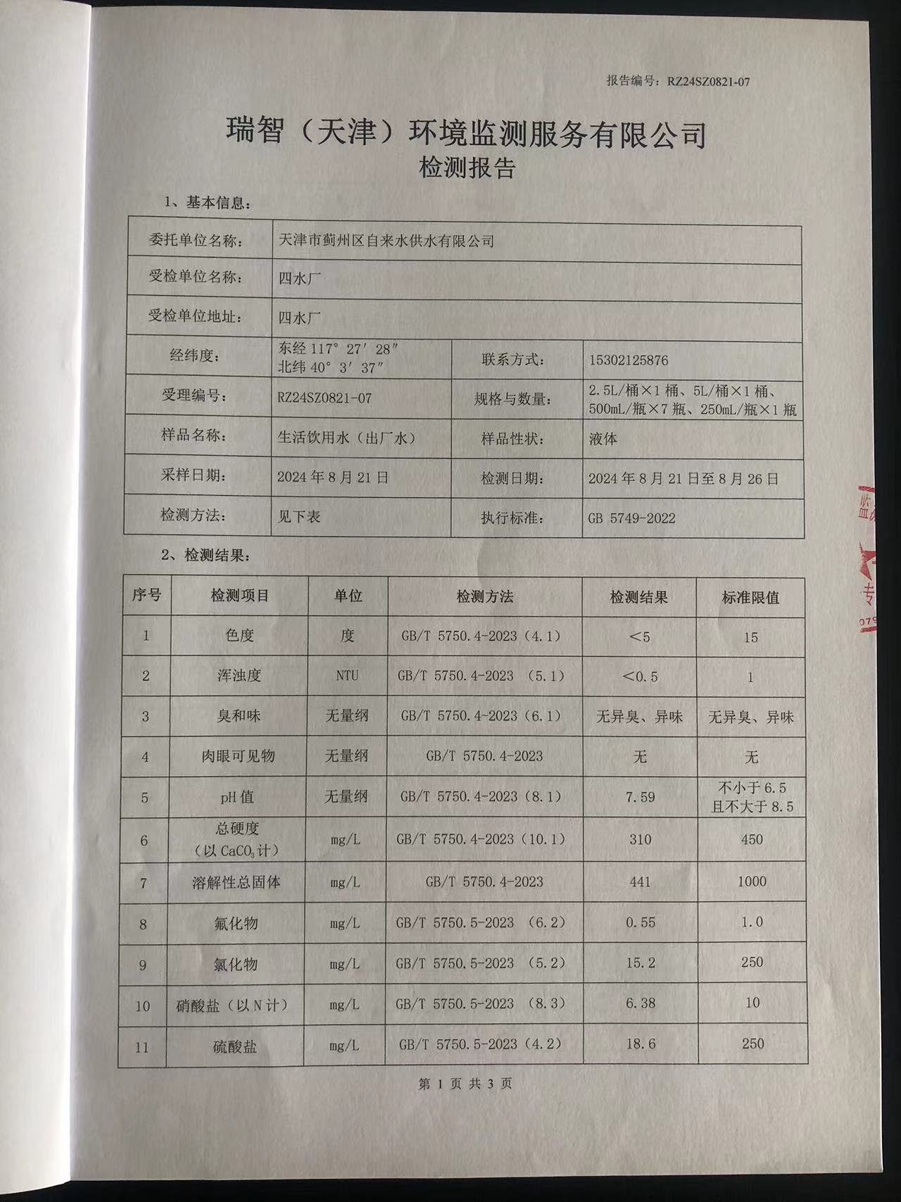 2024年8月份水質(zhì)檢測報(bào)告
