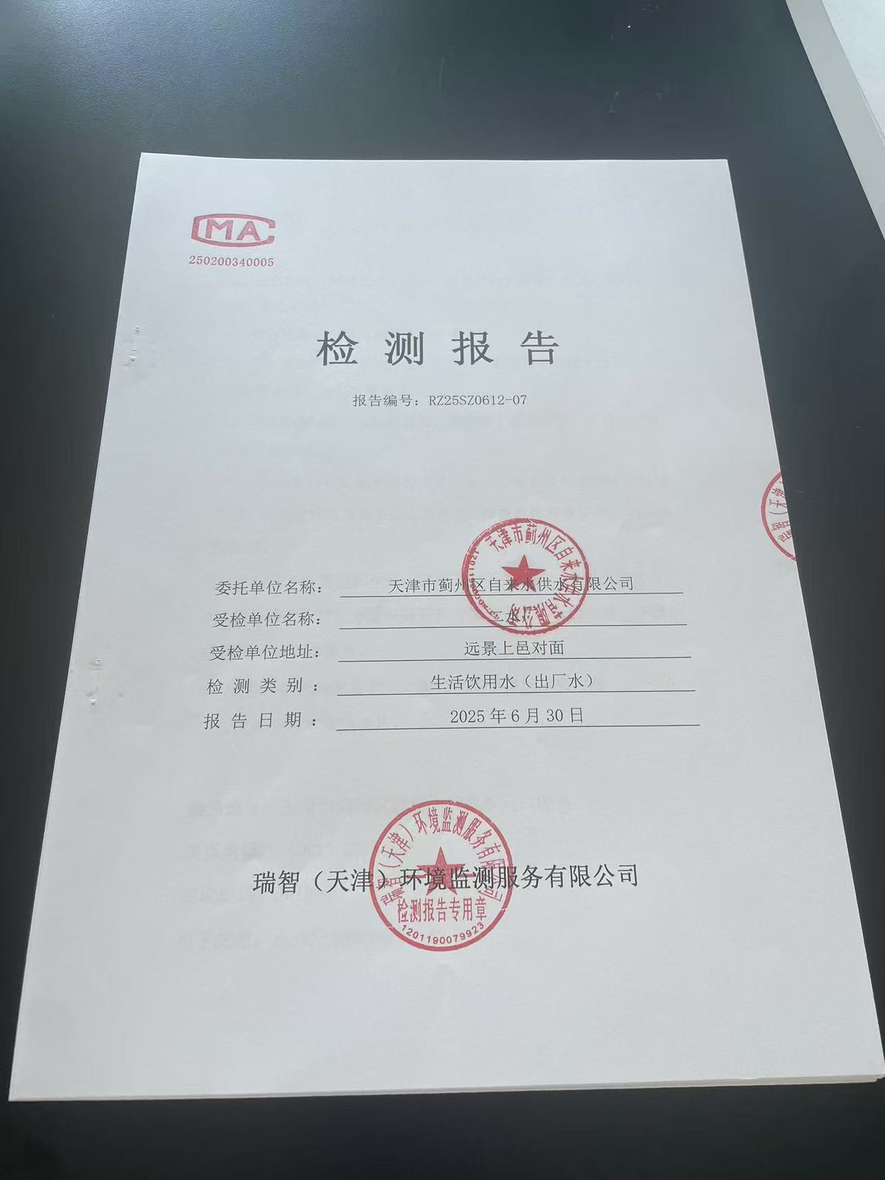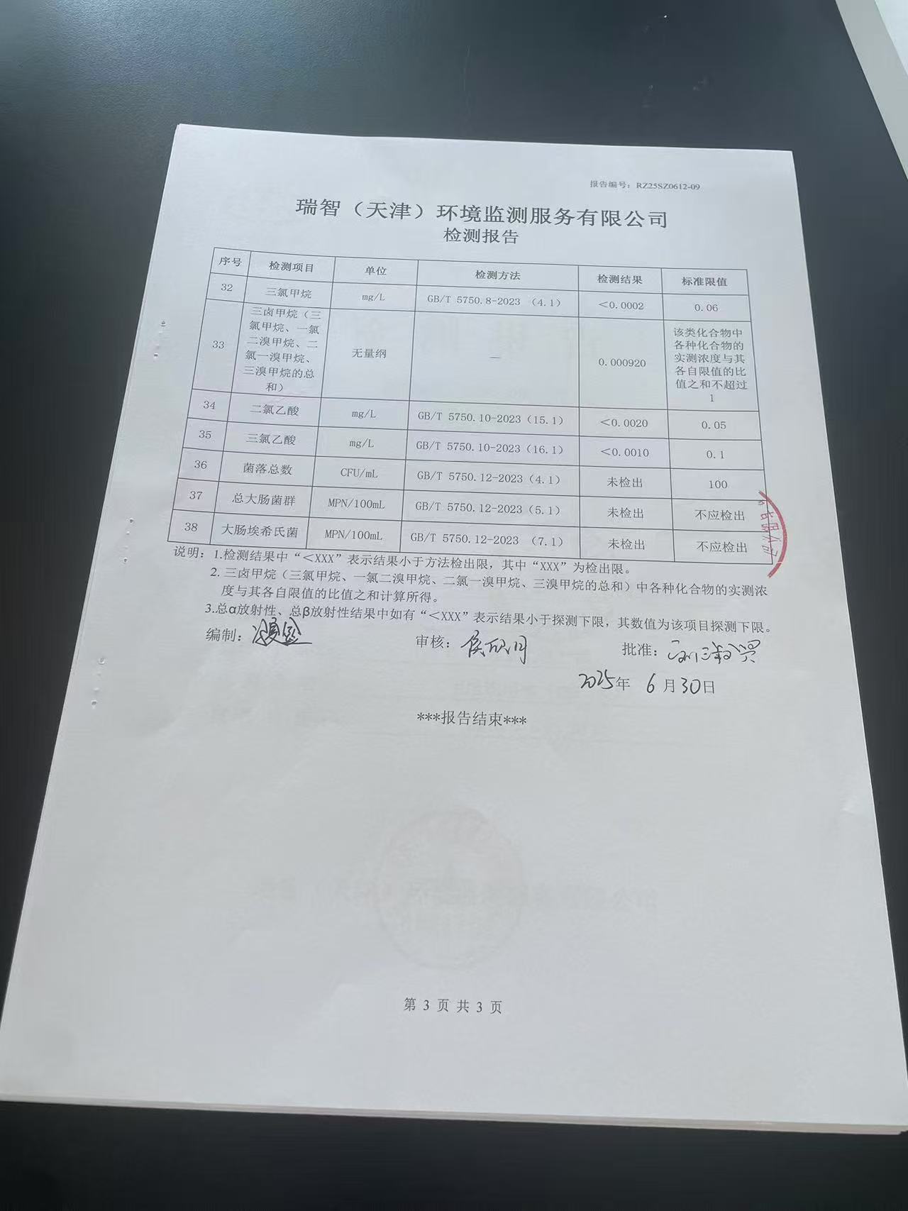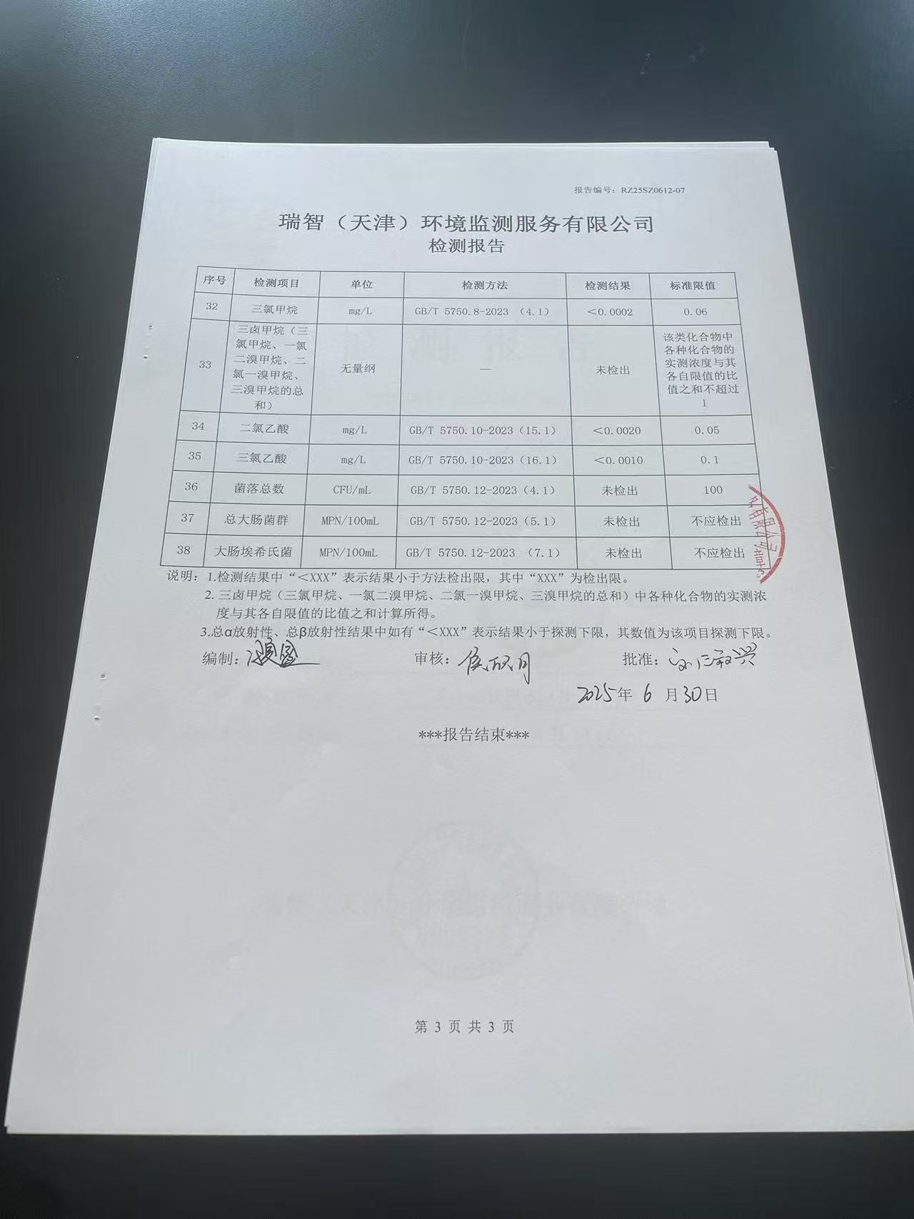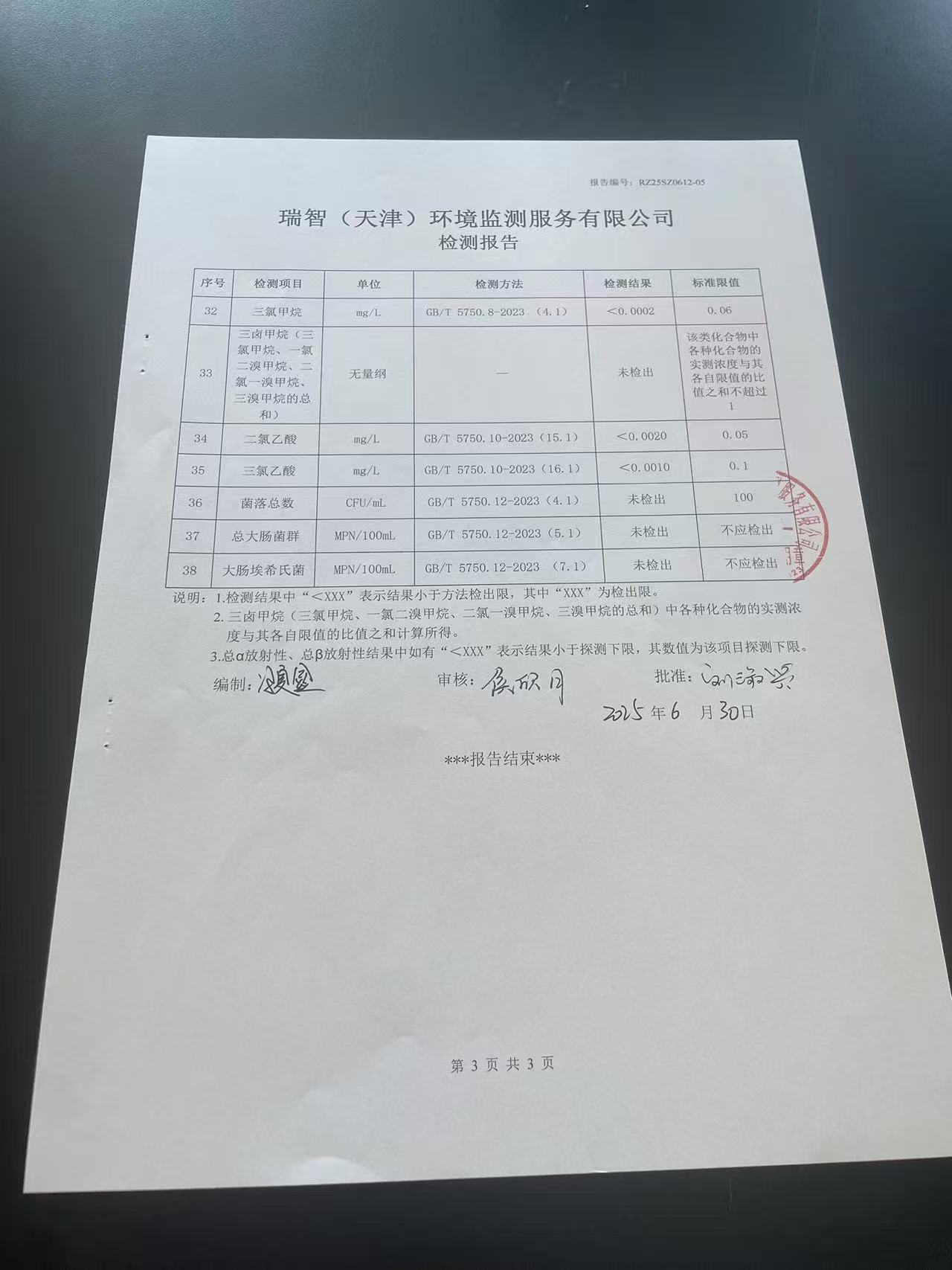 2025年6月份水質(zhì)檢測報告