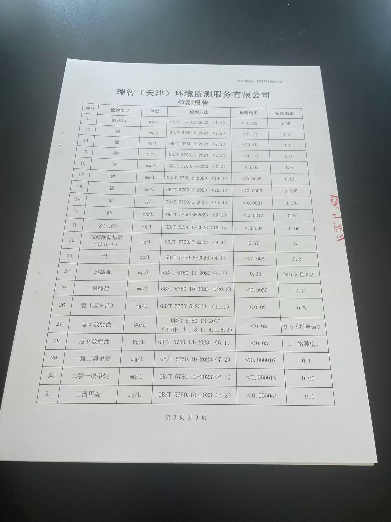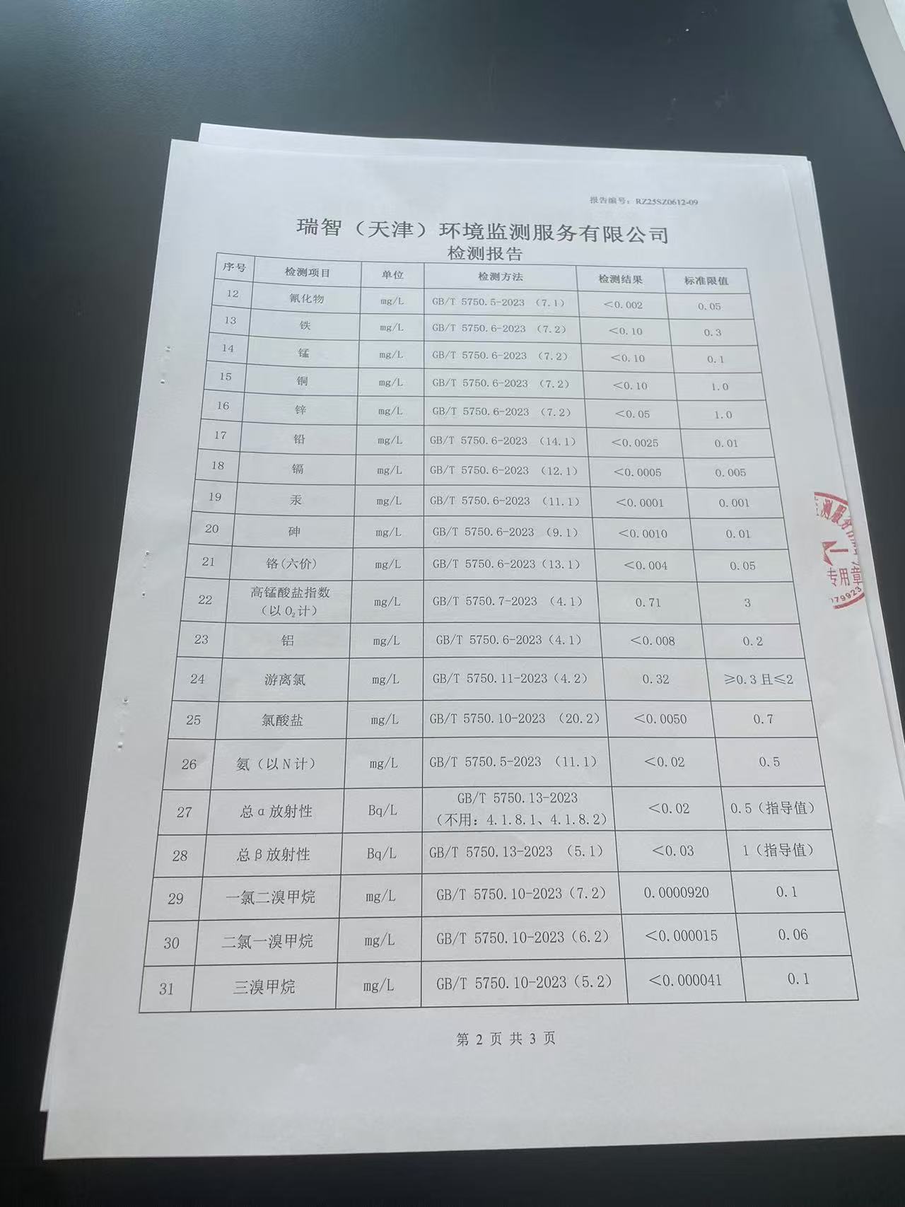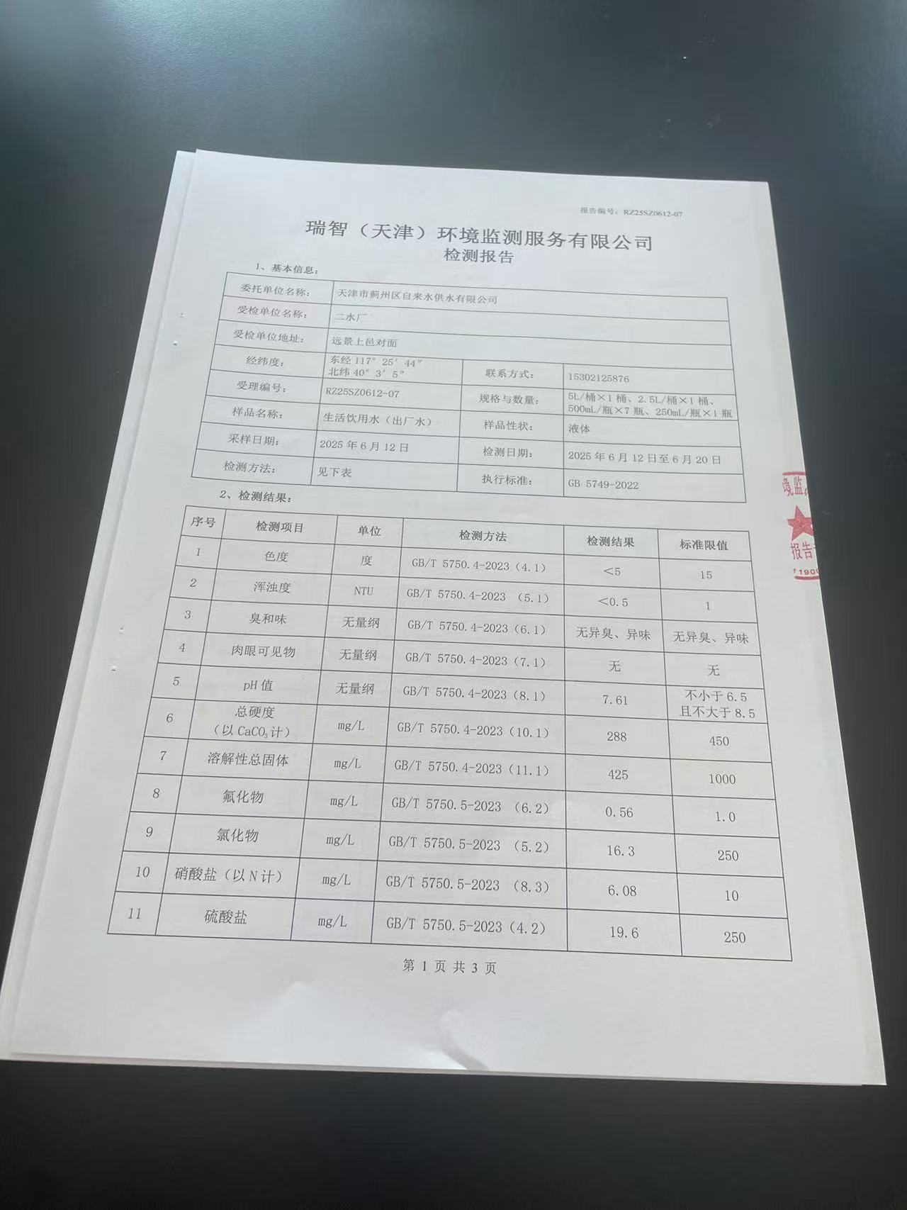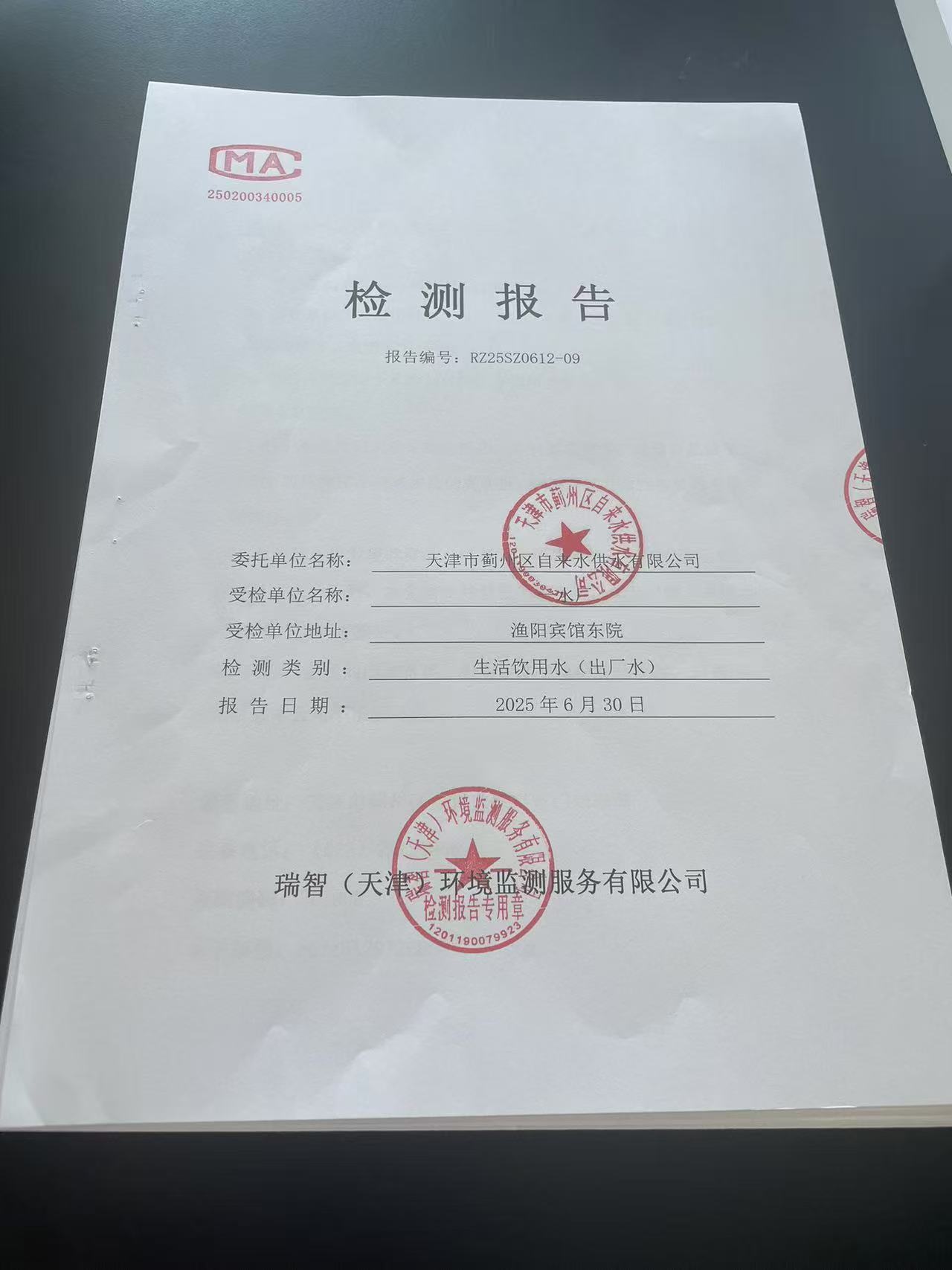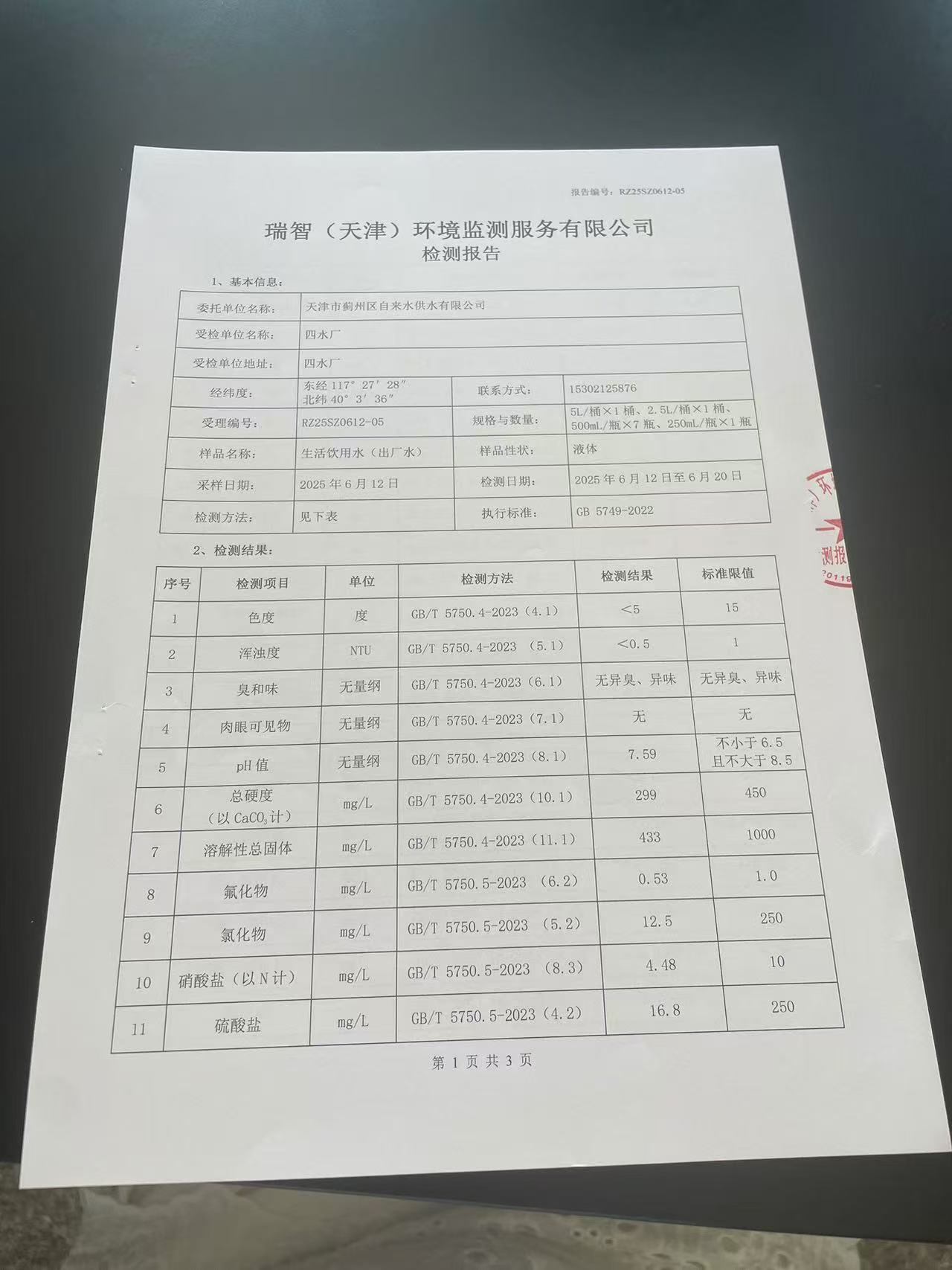 2025年6月份水質(zhì)檢測報告