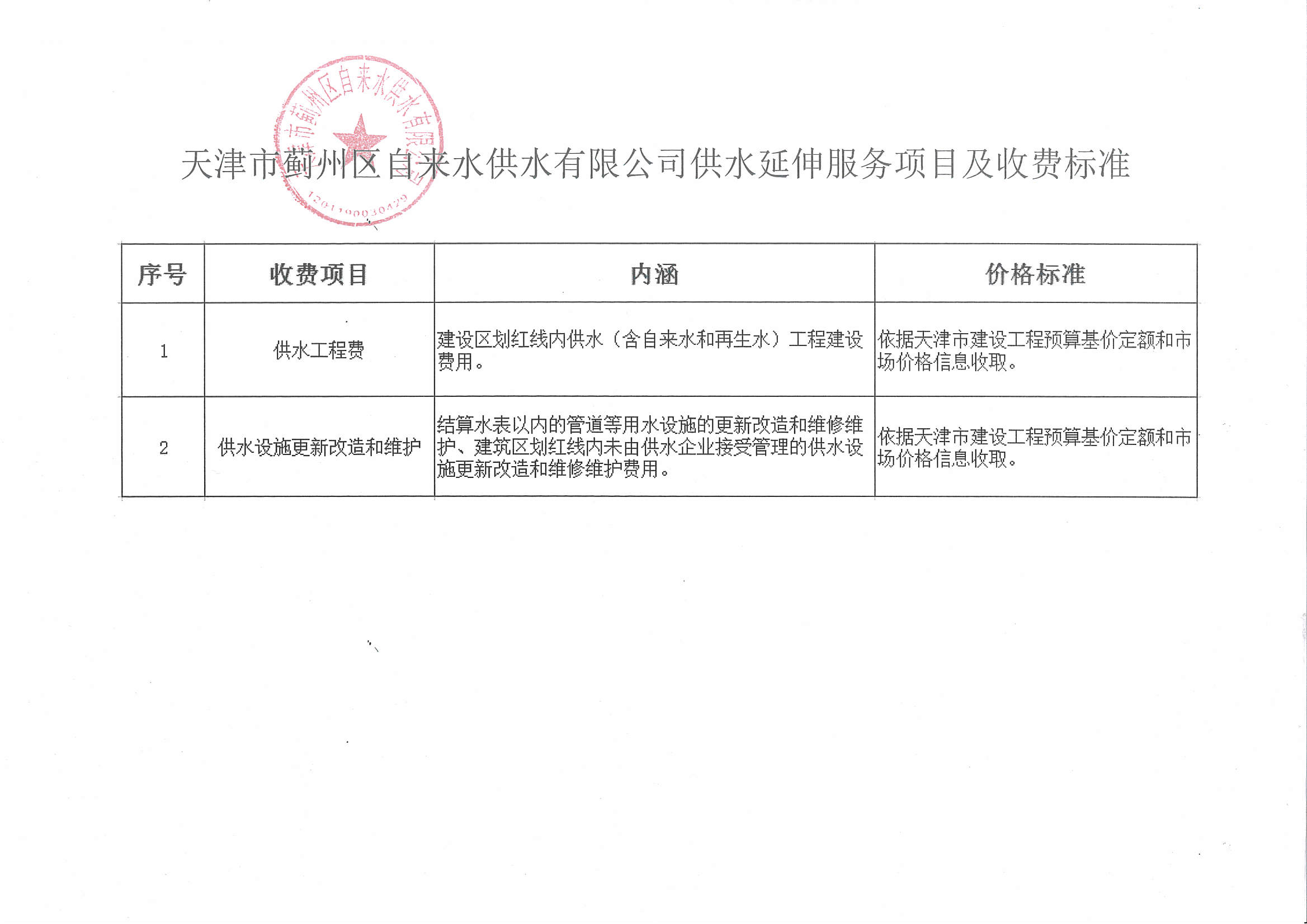 供水延伸服務(wù)項目及收費標(biāo)準(zhǔn)
